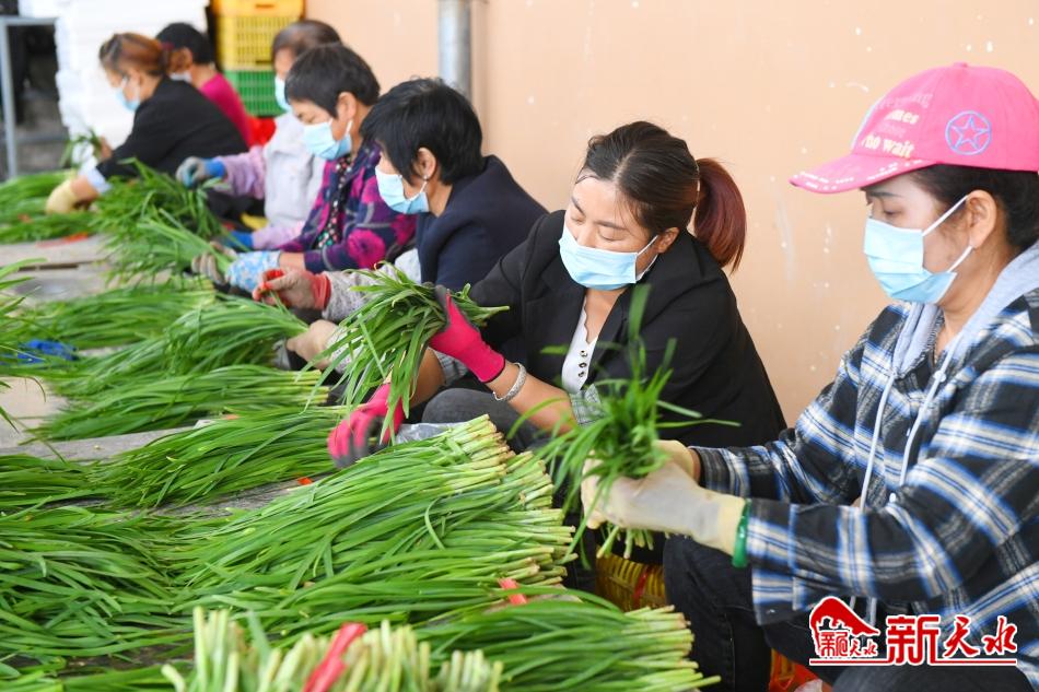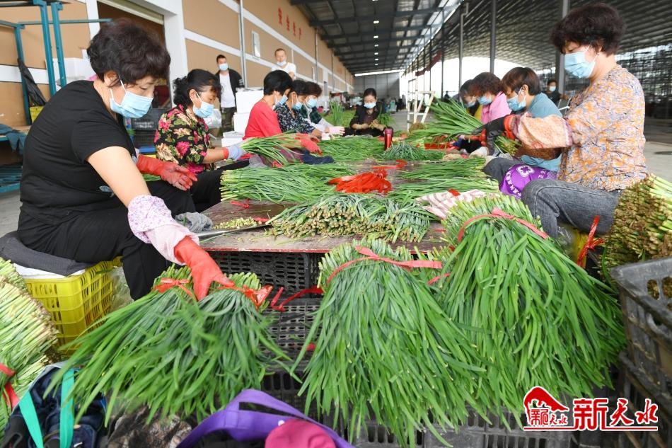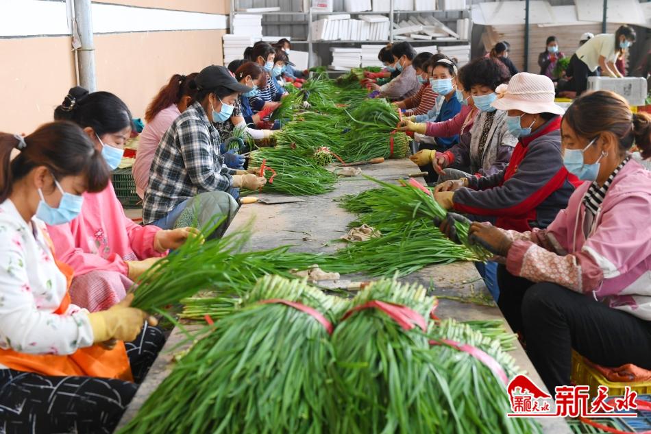 9月13日,工人在天水兴农果蔬冷链有限公司生产车间分拣包装韭菜。