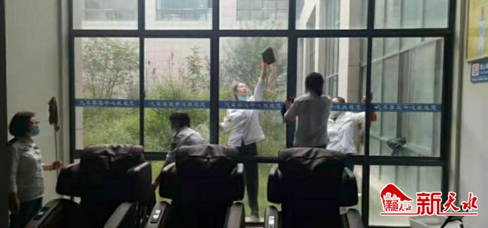 9月12日,天嘉交运集团高铁南站汽车客运中心积极配合创城工作,组织人员整治站内外环境卫生。