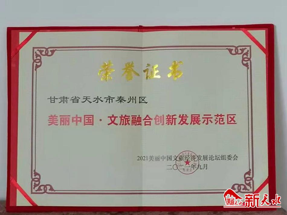 秦州区荣获“美丽中国·文旅融合创新发展示范区”称号