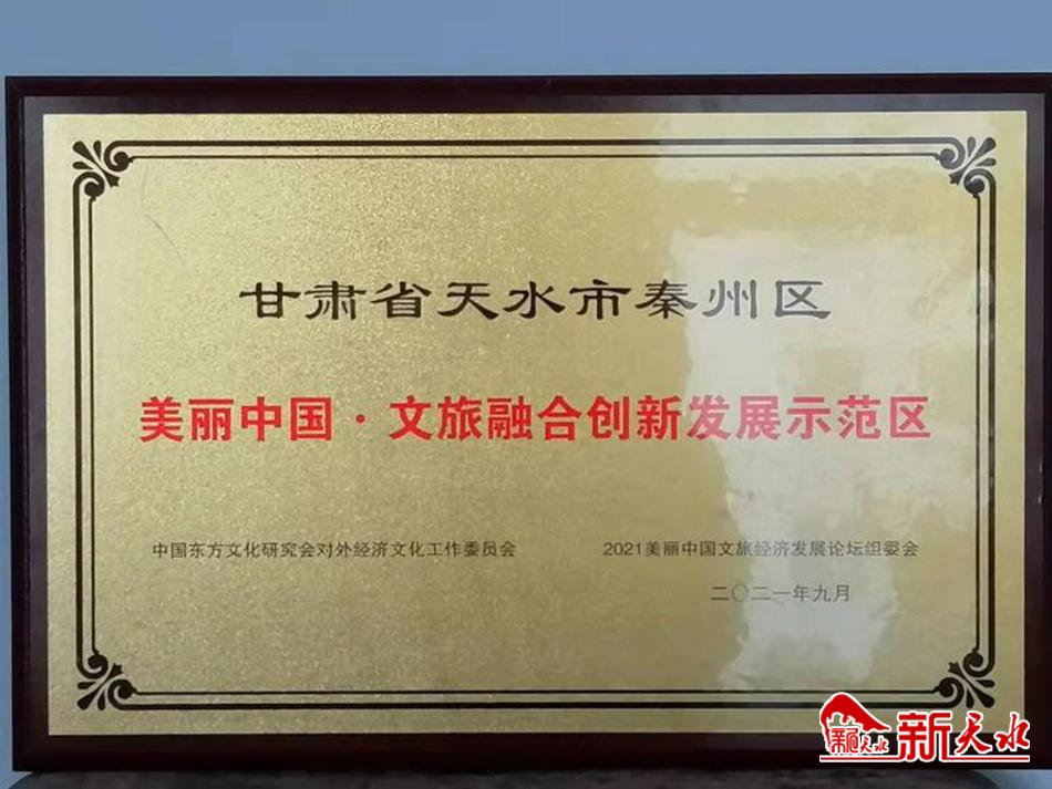 新天水讯【通讯员朱琳】9月10日至13日,由中国东方文化研究会对外经济文化工作委员会主办的“2021美丽中国文旅经济发展论坛”在古都西安举行,发布并表彰了一批全国优秀文旅城市榜单,秦州区被授予“美丽中国·文旅融合创新发展示范区”称号。