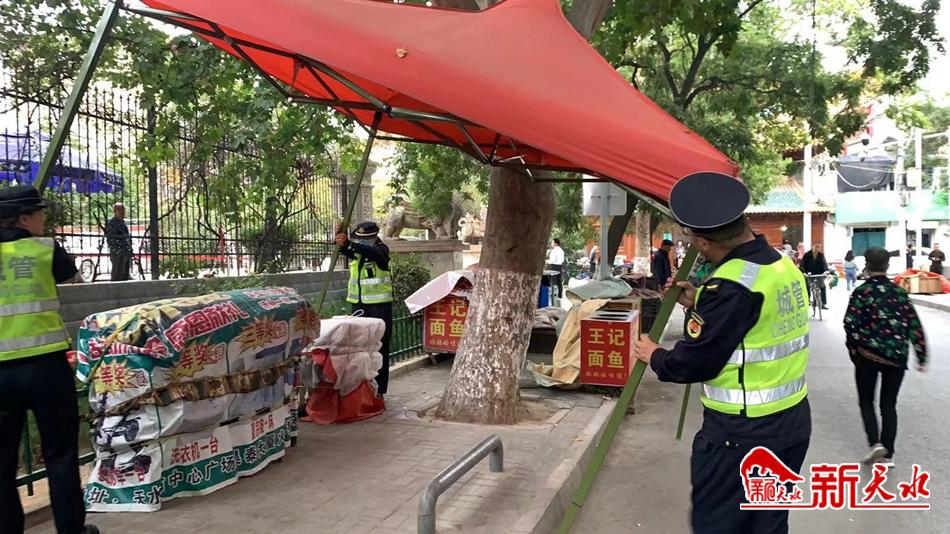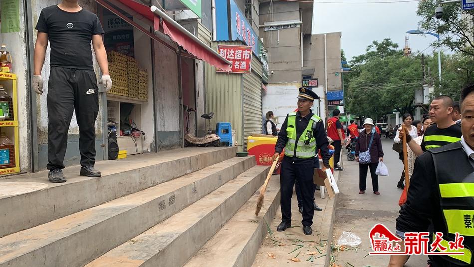 新天水讯【特约通讯员王敏】为深入推进文明城市创建工作,进一步打造整洁、有序的市容环境,9月14日,秦州区执法局西关中队联合整治小组对南明路进行集中治理。