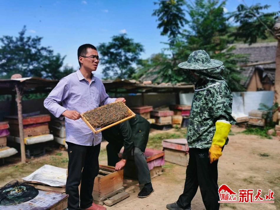 武山县滩歌镇黄山村位于滩歌镇西南林区边缘,海拔1900米左右,草木旺盛,油菜、苜蓿、红豆、柴胡和羌活等野生流密植物丰富,养殖土蜂有着得天独厚的地理气候条件。截至目前,黄山村的土蜂养殖从村集体经济购置的几箱蜜蜂带动发展到现在的全村400箱左右,黄山村群众如同养殖的蜜蜂一样挥动着勤劳的翅膀酿造出甜蜜的生活。 近年来,武山县依托独特的生态环境优势和富足的蜜源资源,将中蜂养殖业与乡村振兴深度融合,发挥党组织引领作用,结合党史学习教育“我为群众办实事”实践活动,将中蜂养殖作为促进乡村振兴的有力抓手,围绕“一村一品”打造特色产业,走出了一条“党建引领、辐射带动、自主经营、助农代销”的新路子。