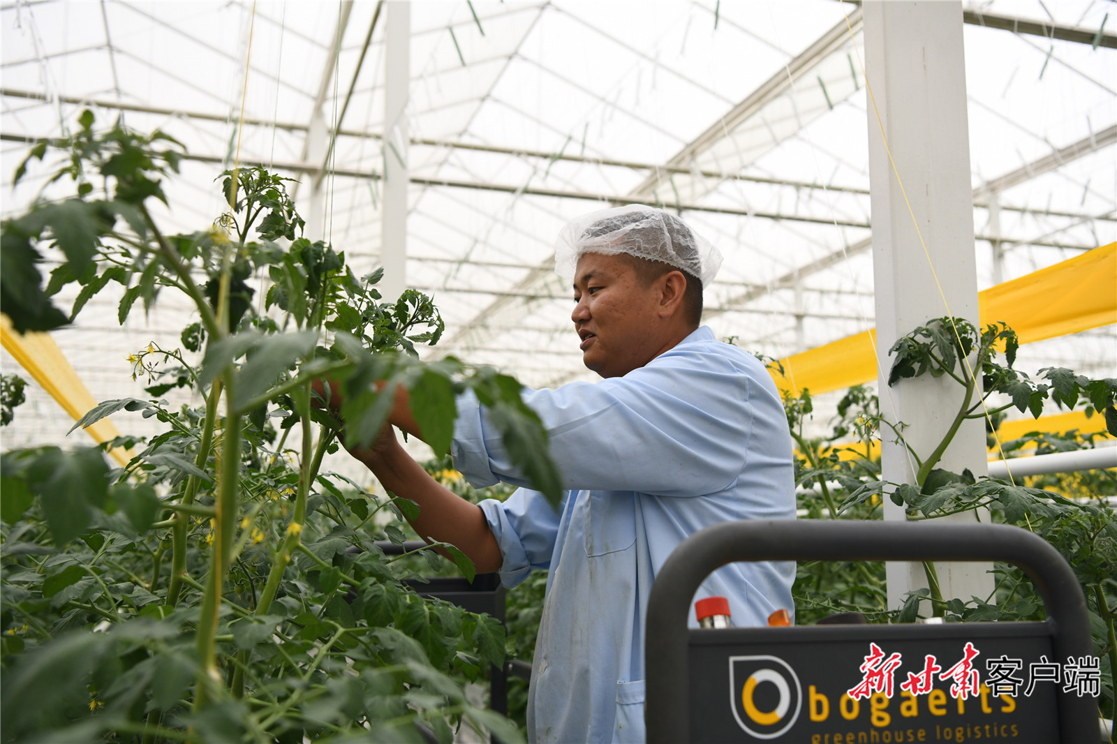 附近村民在大棚里工作