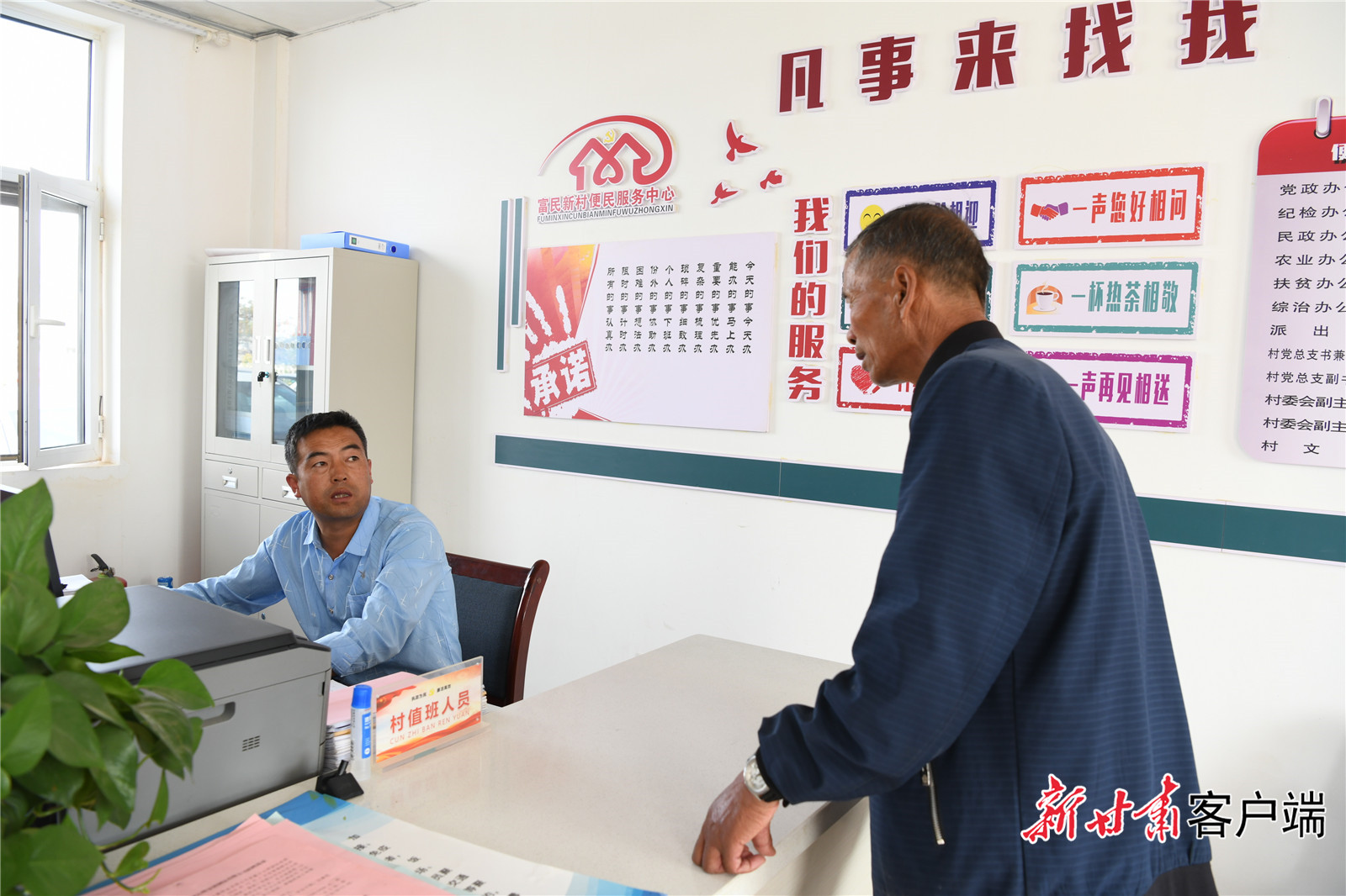 初秋时节,甘肃武威市古浪县黄花滩生态移民区富民新村土地平旷,屋舍俨然。走进富民新村党群服务中心,村民许贵连正在询问如何办理临时救助,他在业务台前询问了十几分钟,弄明白了相关政策。“村值班人员很有耐心,政策讲得清楚,办事也快。”许贵连说。