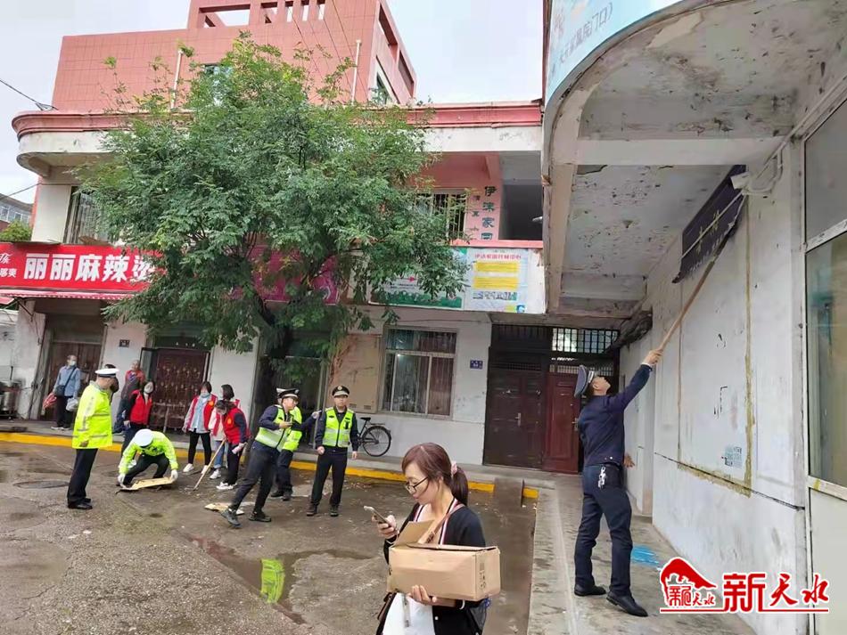 新天水讯 近日,秦州区综合执法局七里墩中队联合辖区交警、环卫、公安就天水市长城中学周边市容环境进行了集中整治。