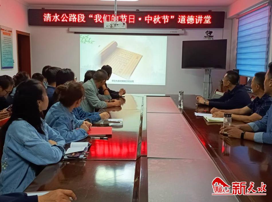 新天水讯【通讯员冯文茜】9月16日,清水公路段举行以“迎中秋·弘扬传统文化”为主题的道德讲堂活动。 本次活动由唱一首歌曲、看一部短视频、讲一个故事、诵一部经典、谈一些感悟、送一份祝福六个环节组成。