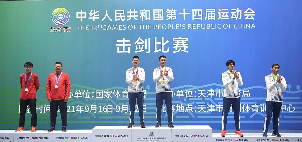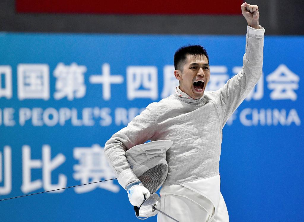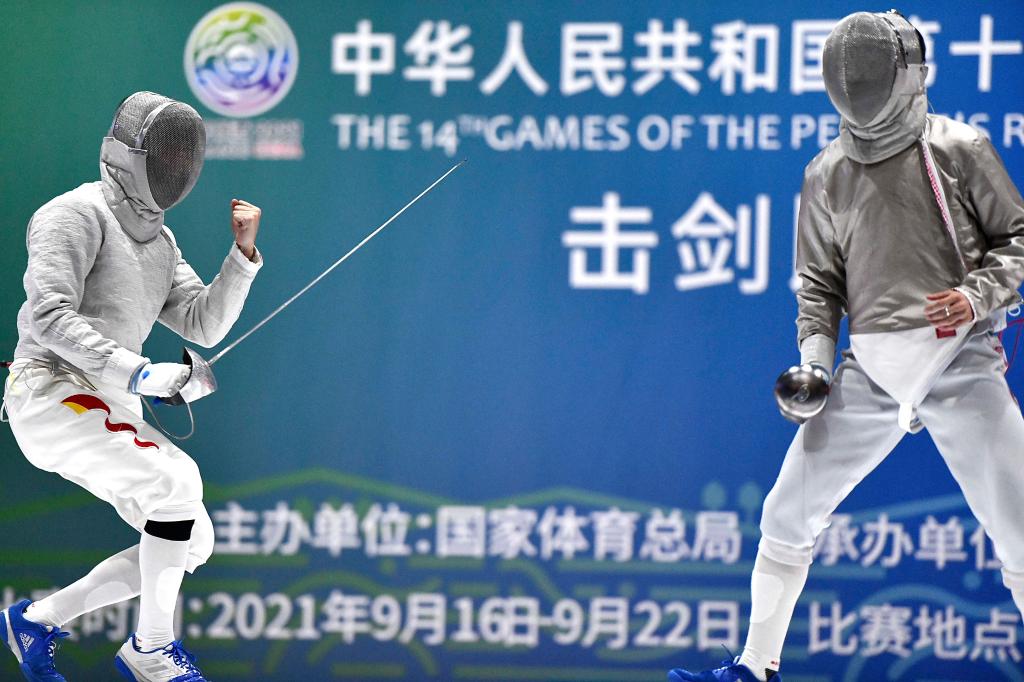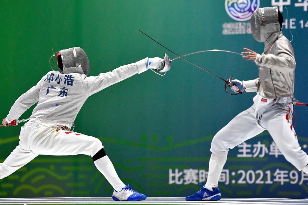 当日,在天津市蓟州体育训练中心举行的击剑项目男子佩剑个人决赛中,广东队选手邓小浩以15比6战胜江苏队选手林霄摘得金牌。