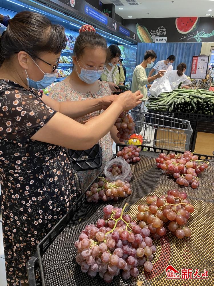 “柚子因外形圆圆的像中秋圆圆的月亮,象征着团圆,还有‘佑’的吉祥寓意,再加上柚子热量低,清热解渴,所以是我们今年中秋节期间主推的水果之一。另外,随着全国各地葡萄的大量上市,价格也十分亲民,也是超市在中秋节期间主推的水果之一。”兰天综合超市李店长对记者说,“我们从8月底便着手准备今年中秋节的水果了,从销售额看,中秋节前各类水果销量较平日能普遍上升10%左右,价格跟往年基本持平。现在超市里的瓜果都非常新鲜,超市也为中秋节的到来备足了货品,消费者现吃现买就行,合理消费。”