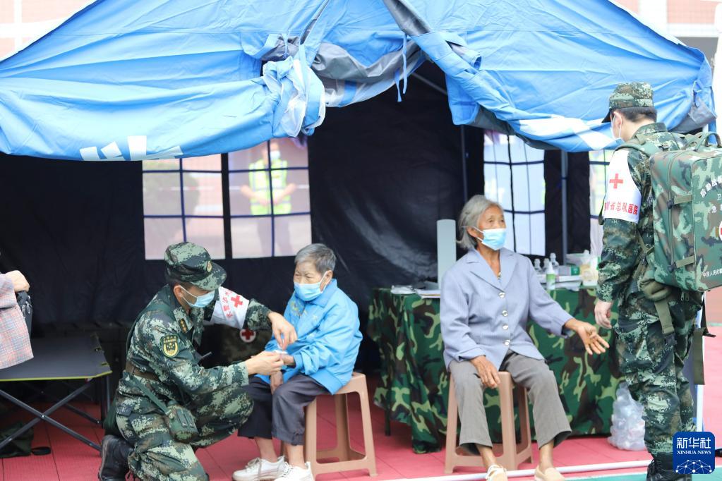 9月16日,武警四川总队医院官兵在泸县为受灾群众开展医疗救助。新华社发(李华时 摄)