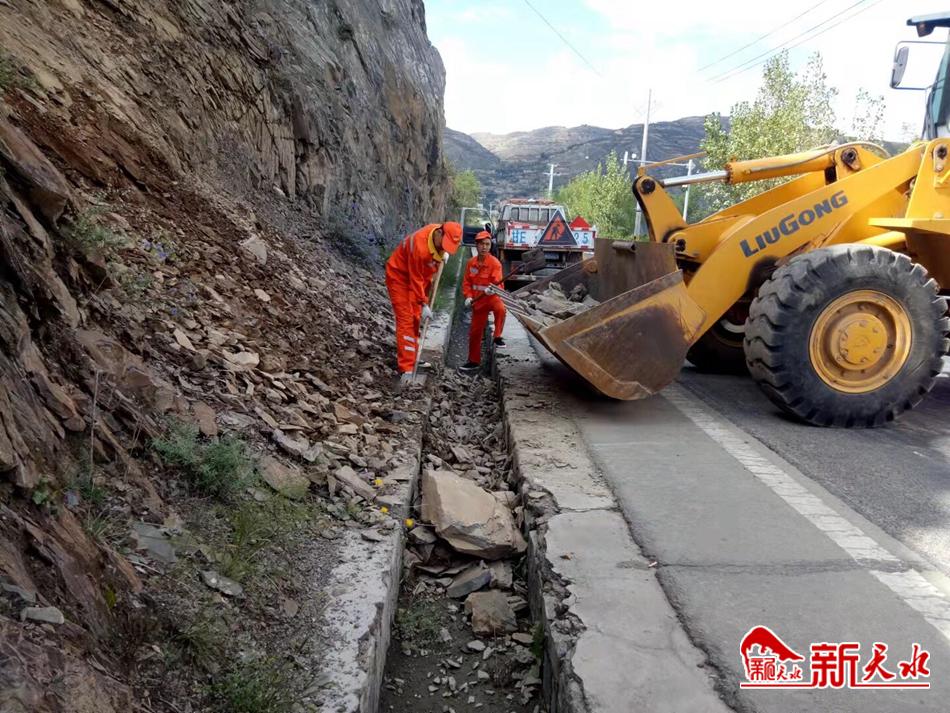 9月15日的暴雨天气过后,秦安公路段管养个别路段出现路面淤泥、落石等现象,他们迅速行动,组织职工及时开展雨后公路养护,全力恢复路容路貌。 该段及时对管养公路路基路面及排水系统、桥涵等及时进行隐患排查;及时整修边坡、清理边沟、开展路面保洁,清扫铲除路面、路肩、平交道口处的淤泥、垃圾等,有效改善了路域环境,为中秋小长假的到来提供通行保障。