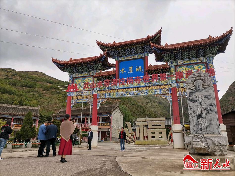临近中秋佳节,武山县各景点也又一次迎来旅游高峰。图为9月17日,国家4A级旅游景区武山水帘洞迎来了陇南的一个旅行团,40多名旅游爱好者慕名而来到水帘洞“打卡”。