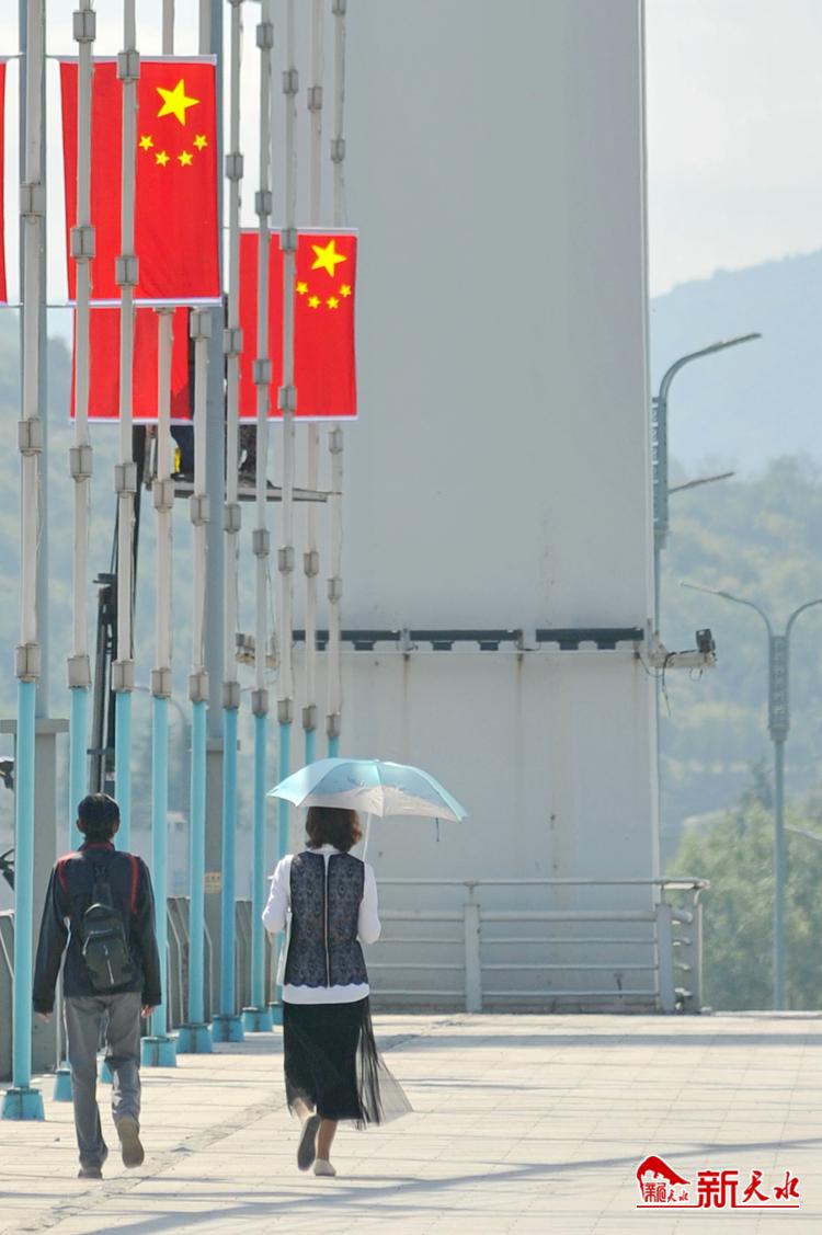 悬挂国旗迎国庆 天水“创城”在鼓劲