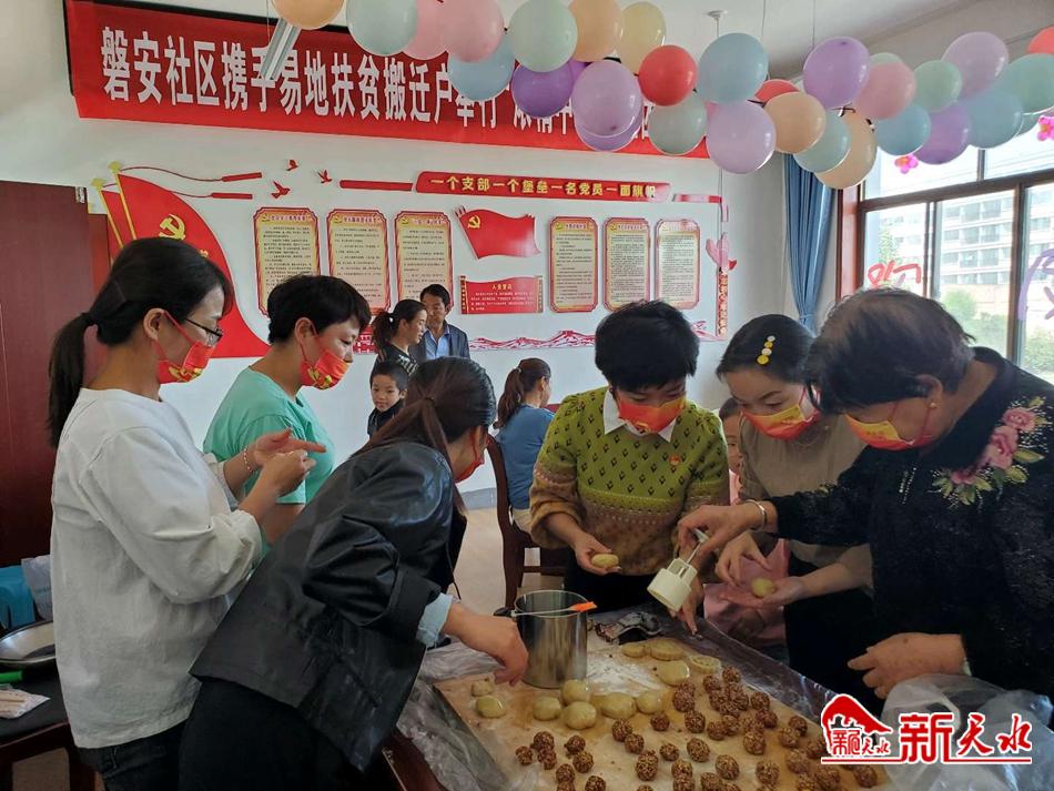 大家齐聚一堂,在共话团圆中,温情迎中秋;在欢声笑语中,增进邻里感情。 一大早,磐安社区工作人员就将制作月饼所需的面粉、食用油、模具、馅料等食材准备妥当,镇干部、社区工作人员和社区居民齐上阵,和面、包馅、蒸点心、烤月饼……一盘盘月饼的出炉,与大家脸上洋溢的灿烂笑容交相辉映,温馨的画面充满整个社区。 茶话会在最美“夕阳红”乐队优美的歌声中拉开帷幕,伴着二胡、电子琴、笛子、萧、风琴和大合唱,社区老党员和退休教师为大家带来了一场精彩的表演。 大家一边品尝自制美味月饼,一边围绕“如何把社区这个大家庭建设得更加美好”这一主题畅谈心得体会,分享个人经验。乐队代表、居民代表及易地扶贫搬迁户代表进行了交流发言。 此次活动,不仅让磐安社区居民深切感受到了浓厚的节日氛围,丰富了大家的精神文化生活,同时也为创建省级文明县,打造和谐社区,共享文明家园增添了力量。尤其令易地扶贫搬迁户真切感受到了磐安社区党支部的关爱和关心,社区大家庭的温情和温馨。