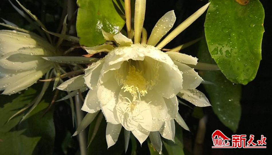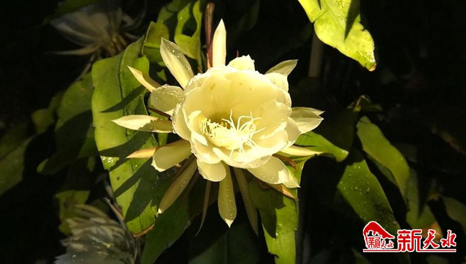 新天水讯【特约通讯员 吴雪镕】秋月优昙分外清,娇姿美态见分明。9月19日晚,麦积区北道埠街道一居民家里,昙花悄然绽放。 花叶外围呈绛紫色,花心里有成束淡黄色的雄蕊,下过雨的露珠正缀在花瓣上,看上去冰清玉洁、玲珑剔透。令汪先生一家欣喜不已。
