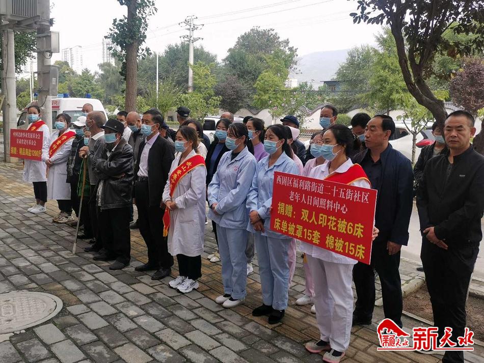 新天水讯【特约通讯员蒲爱民 包玉霞 】9月23日,武山县“乐龄之家”揭牌仪式在武山县线上线下服务体验中心举行,相关单位捐赠了棉被、床单被套、精品海盐等物资。