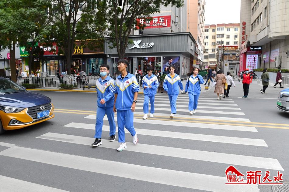 道路上,车让人已蔚然成风,看灯行成习惯自然,交通秩序和谐顺畅;