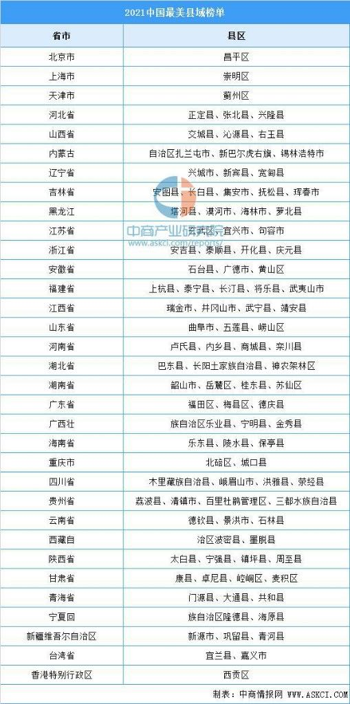 “2021中国最美县域”榜单