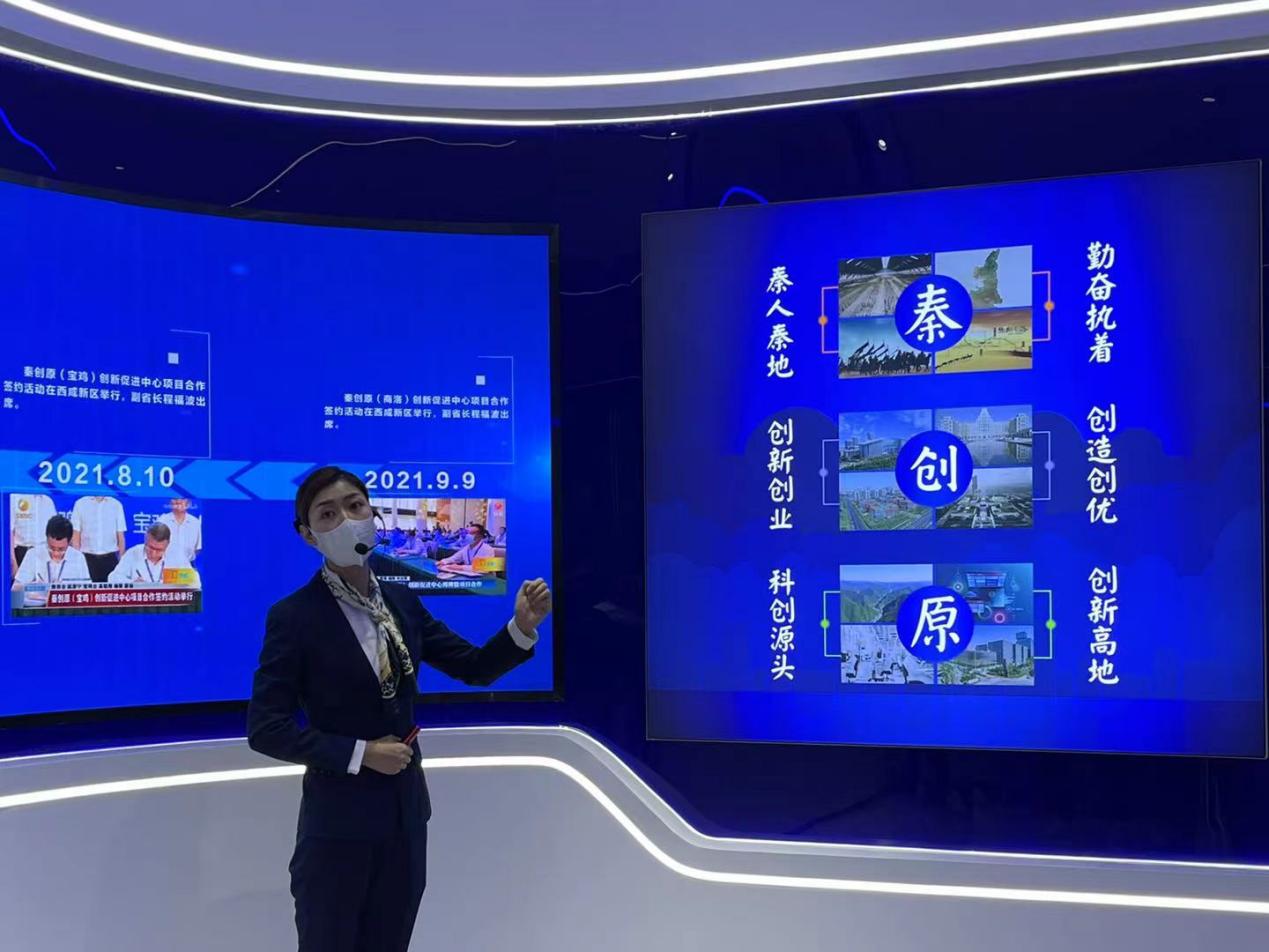 秦创原综合服务中心工作人员正在讲解秦创原的内涵。人民网记者 何旭摄
