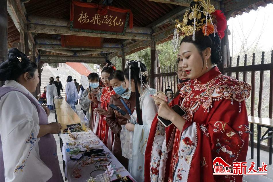 在玉泉观景区装点布置古风集市,展示汉服首饰、国风器物、原创手工等特色商品,不必穿越时空,即可逛一场古代气息浓郁的市集——在熙熙攘攘的人流中穿梭,沉浸式体验古代盛世的烟火气息。