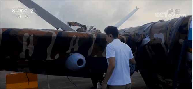 总台央视记者 李宁:我身边的这款产品就是“彩虹”家族的明星产品——首次参展的彩虹-6。彩虹-6是刚刚研发出来,目前还是一个工程样机。彩虹-6体型非常大,翼展20多米,起飞重量可以达到7.8吨,而且它使用涡扇发动机,这一点就跟很多的无人机都不一样,续航时间可以达到20个小时,可以作为空中长时间的驻留平台,它可以挂载光电预警雷达、电子侦察、空地导弹、空地炸弹、反辐射导弹、中小型的巡飞弹等多种载荷,相信彩虹-6在正式定型投产之后,也会成为无人机家族一款非常重要的产品。