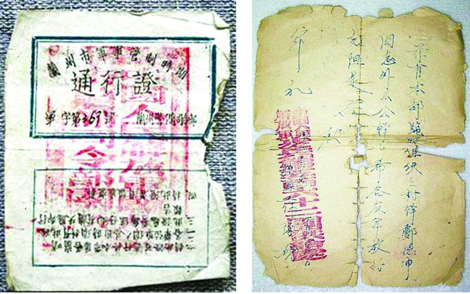 第六十三军第五百六十二团供给处开给支前人员郑德坤的路条