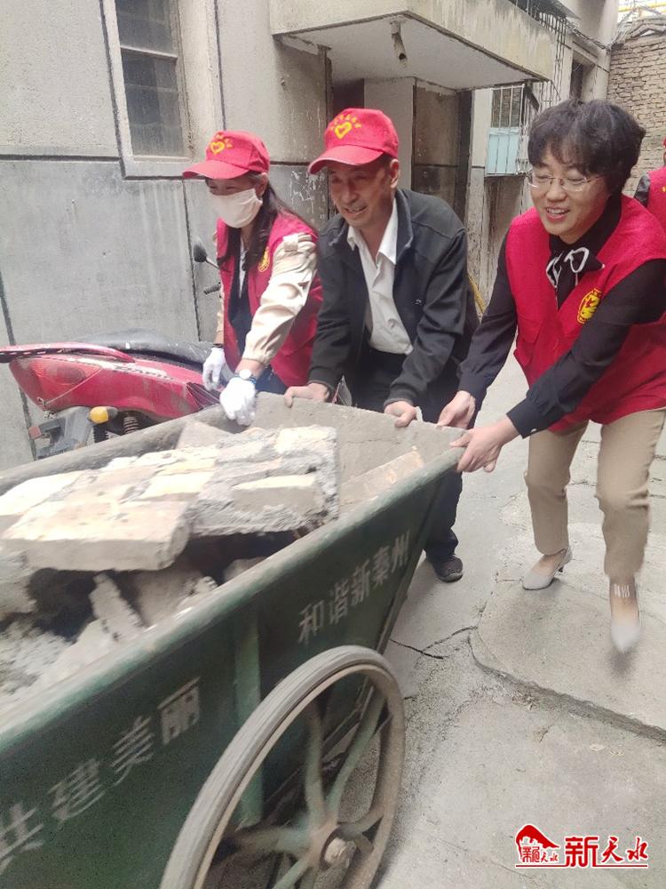 与此同时,她的同事们也都没有闲着,他们或手拿扫把、垃圾钳清扫捡拾路边的垃圾,或拿着铲子清除墙体上的“牛皮癣”小广告,或耐心细致地向包抓社区居民讲解垃圾分类的意义……忙碌的他们,和其他志愿者一道成了街头流动的风景线。