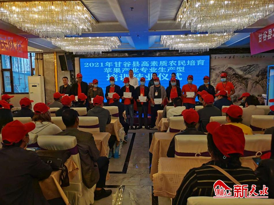 新天水讯【特约通讯员 武建峰】9月27日,甘谷县举行2021年高素质农民培育苹果产业专业生产型培训班结业仪式。