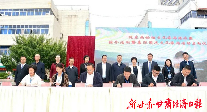 启动仪式上,宣读了《陇东南始祖文化旅游经济圈联动发展宣言》,启动了陇东南始祖文化旅游经济圈暨喜迎国庆文化旅游活动,五市文旅部门全面推介了各自极具地域特色的文化旅游资源、产品,充分展示出独特的文旅品牌和广阔的发展前景。天水市重点推出14条天水精品旅游线路,为市民游客提供了科学、精准的旅游信息。天水市重点旅行社分别与陇东南地区重点旅行社签订了旅游互送合作框架协议。