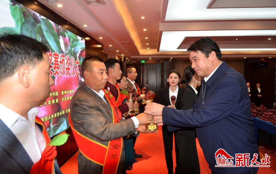 市委副书记杨小平,甘肃省苹果产业体系首席专家、甘肃农业大学园艺学院院长陈佰鸿,市人大常委会副主任李焕珍,市政协副主席唐宏伟出席大奖赛,并为获奖者和全市果品营销先进企业(合作社)颁发奖牌和荣誉证书。市政府党组成员逯克宗主持大奖赛。
