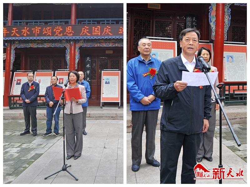 新天水讯【记者孙镇】9月29日,2021年天水市“颂党恩庆国庆迎重阳”老年书画展在市文化馆开展。市人大常委会副主任王晓琴出席开展仪式并致辞。市政协副主席马勤学宣布书画展开展。
