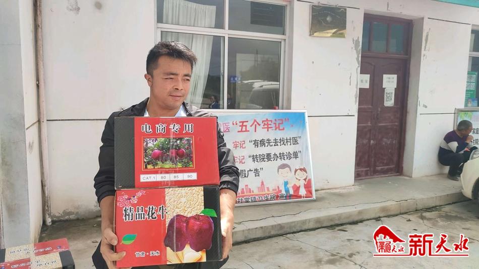 新天水讯【特约通讯员 吴雪镕】又到金秋丰收季,累累硕果挂枝头。在麦积区社棠镇村民东守康家的果园里,东守康和村民们正在忙碌紧张地采摘苹果。