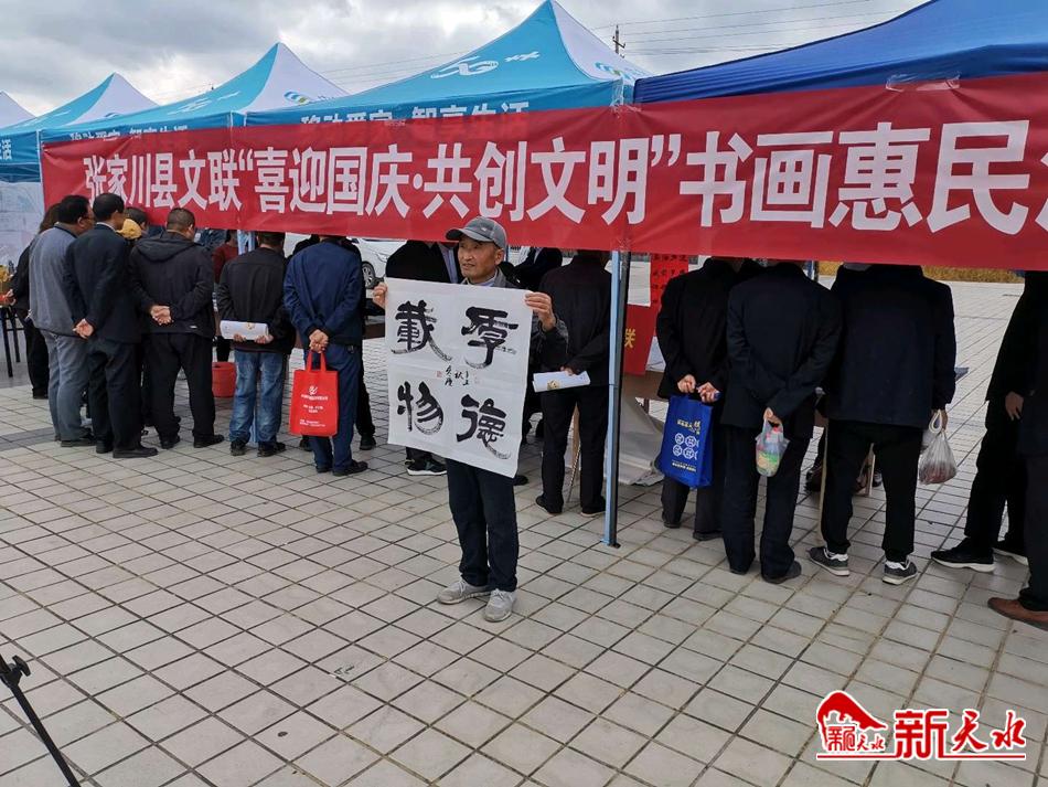 为弘扬中华优秀传统文化,培育和践行社会主义核心价值观,丰富全县人民国庆期间的业余文化生活,助推省级文明县创建。9月30日,张家川回族自治县文联在张家川县行政中心广场举行“喜迎国庆•共创文明”书画惠民活动,以书画作品提振精神,以书画活动传送友谊,全力为张家川县委县政府主办的“张家川县2021年‘大美张家川 国庆欢乐购’促消费活动”营造良好的文化氛围,为参加促消费活动的群众和来宾发放《关山文艺》文学期刊3000余册,现场为群众创作捐赠书画作品240余幅,受到当地干部群众的好评。