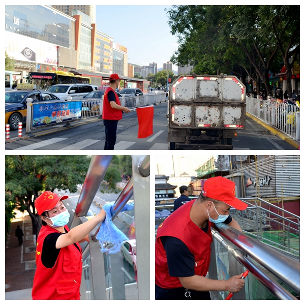 9月30日,天水市公安局志愿者在秦州区大众中路至南大桥路段开展创城“包街”志愿服务活动。