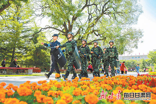 国庆假期,武警甘肃总队平凉支队与当地公安密切协同,开展重点区域联勤武装巡逻。新甘肃·甘肃日报通讯员王治国