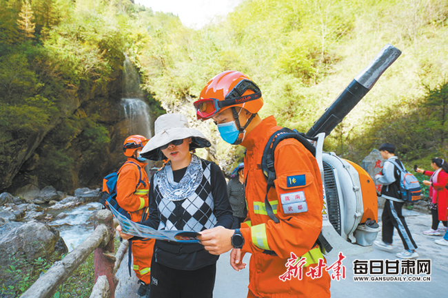 甘肃省森林消防总队陇南支队在官鹅沟国家森林公园开展“国庆防火专项行动”。新甘肃·甘肃日报通讯员刘辉