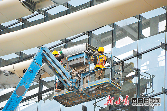 在兰州体育馆提升改造项目施工现场,工人坚守一线抢抓工程进度。新甘肃·每日甘肃网记者冯乐凯