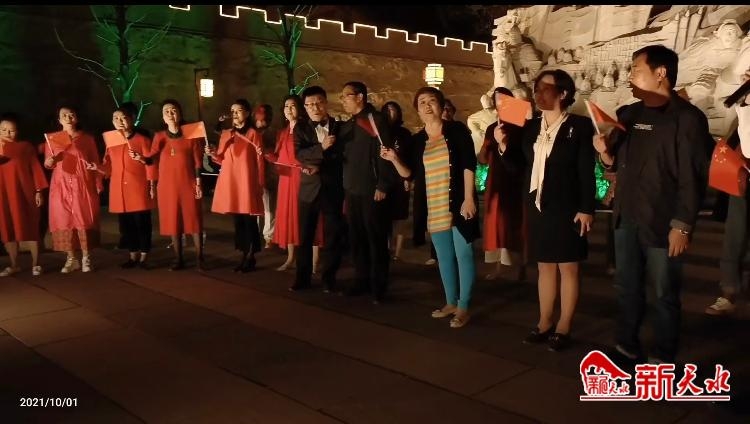 “我爱你中国,我爱你中国……”“我要把美好的青春献给你,我的母亲我的祖国……”国庆期间,回荡在天水西关古城上空众人齐唱的《我爱你中国》给游客和市民留下了深刻的印象。
