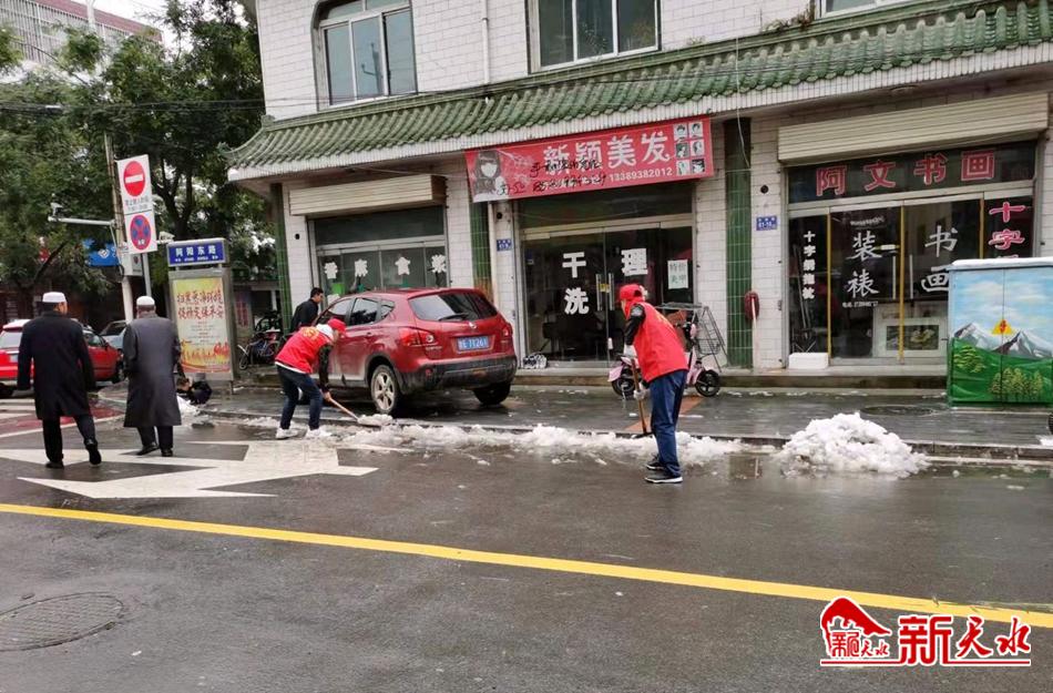 新天水讯 10月9日夜间张家川县普降大雪,造成路面、街道积雪且十分湿滑,给县城居民出行造成了安全隐患,为确保居民平安出入,张家川县教育局组织全体干部职工开展了清扫积雪志愿服务活动。