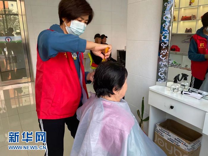 图为盈北社区的免费理发服务。 新华网 王莹摄