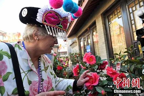 国外专家在云南赏茶花。中新社记者 刘冉阳 摄