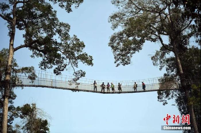 西双版纳望天树空中走廊吸引游客体验。中新社记者 李进红 摄