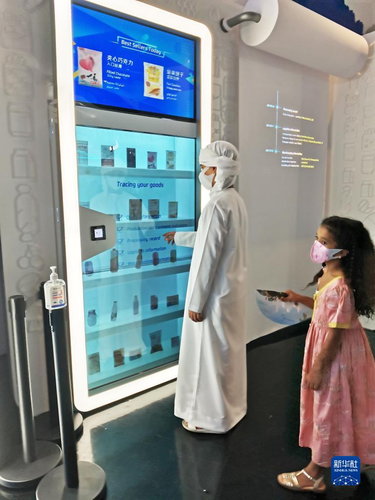 10月1日,参观者在阿联酋迪拜世博会中国馆“智慧生活”展区现场体验虚拟智慧零售柜。新华社记者 余福卿 摄
