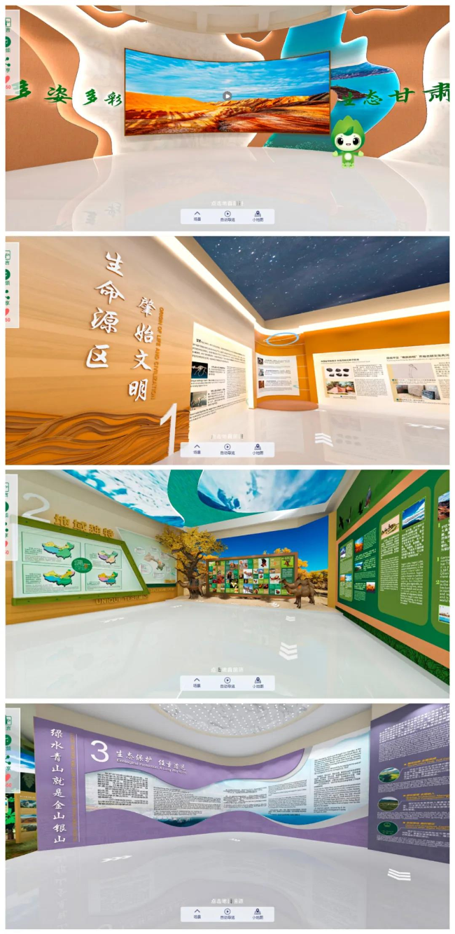 甘肃线上云展馆围绕生物安全、野生动物保护及生物多样性保护基础知识等内容,向公众普及相关知识。展馆设计造型大气,内容丰富,既具有甘肃特色元素,又展现甘肃生物多样性成果,兼具观赏性与科普性。展厅设计理念采用了初夏的陇原大地,戈壁风貌、祁连山风情、敦煌元素作为背景,通过线上虚拟现实技术,打破距离与时间局限,让参观者足不出户,通过移动、PC多渠道浏览到甘肃的自然保护地风貌以及栖息在此的各类野生动植物。