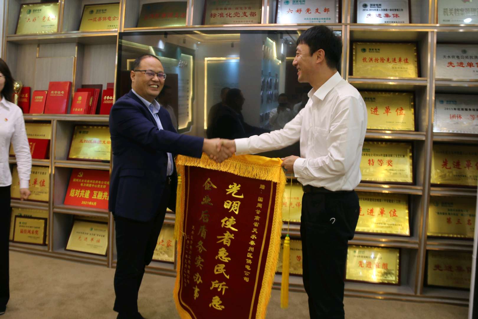 新天水讯【记者 陈少娟】“之前都是在物业上交电费,有的时候我们下班了人家也下班了,现在好了,我们可以随时随地在手机上交电费了。最主要的是,电价更便宜了。”近日,天水长城开关厂有限公司张经理说,同时,为了表达感谢之情,他们制作了一面写有“光明使者急民所急,企业后盾务实办事”的锦旗赠送给了秦州区供电公司。