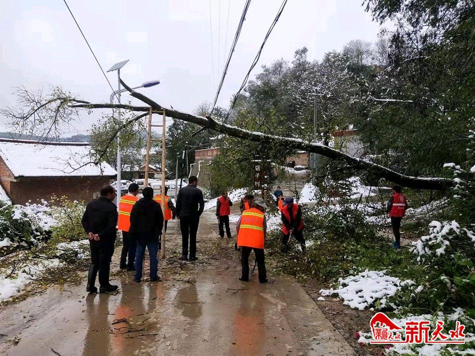 新天水讯【 特约通讯员 王玉芳 王丹 韦亚倩】10月10日凌晨3点,受较强冷空气影响,清水县域内突降雨雪。部分路段树木不堪雨雪负重,树枝折断压在电力线路,供电设施受到严重破坏,除永清镇外乡镇线路跳闸、供电中断。