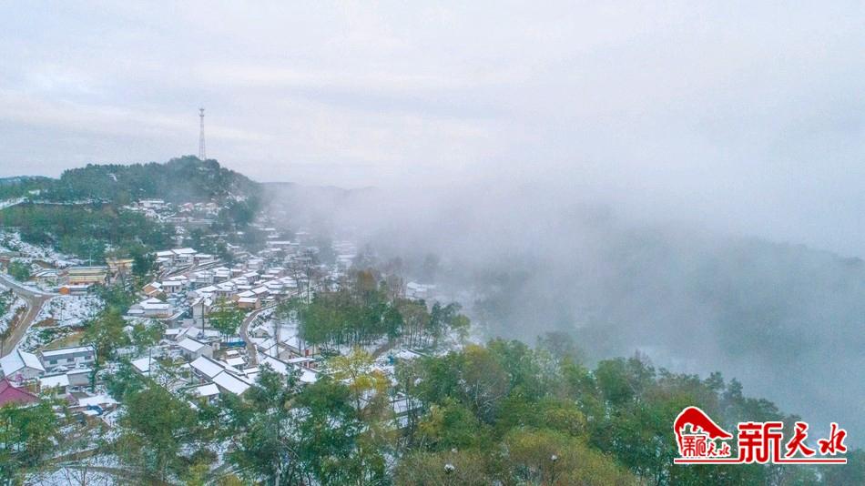 深秋的清水县草川铺镇九龙村,高低错落的大山层林尽然,呈现出斑斓的色彩,被浓雾掩映下的村庄一片静谧,看得见山、望得见水的田园美景尽收眼底。