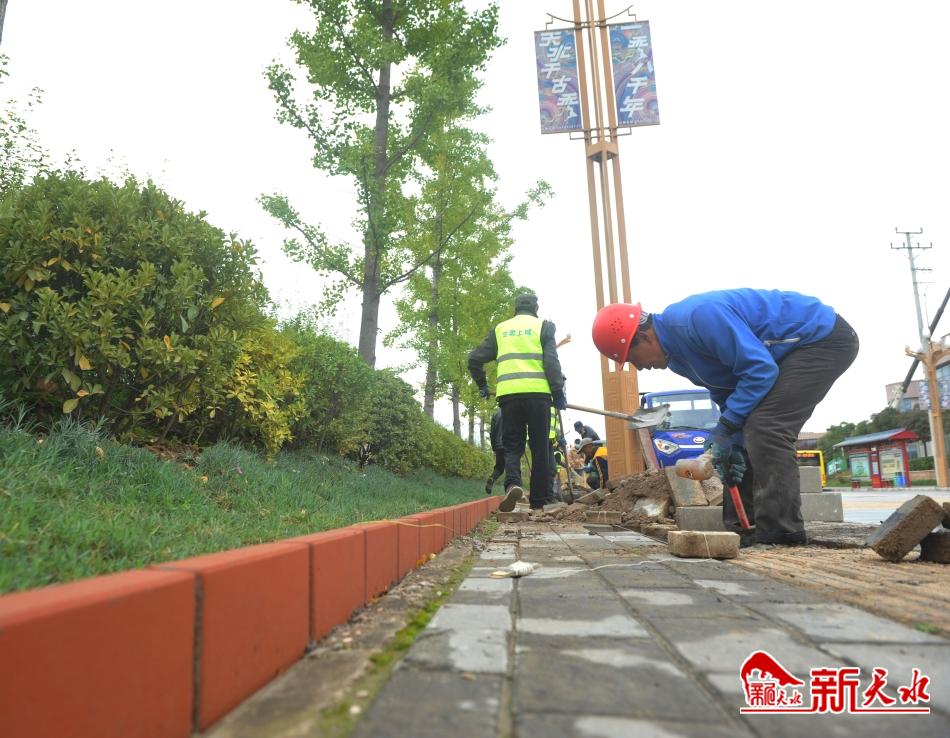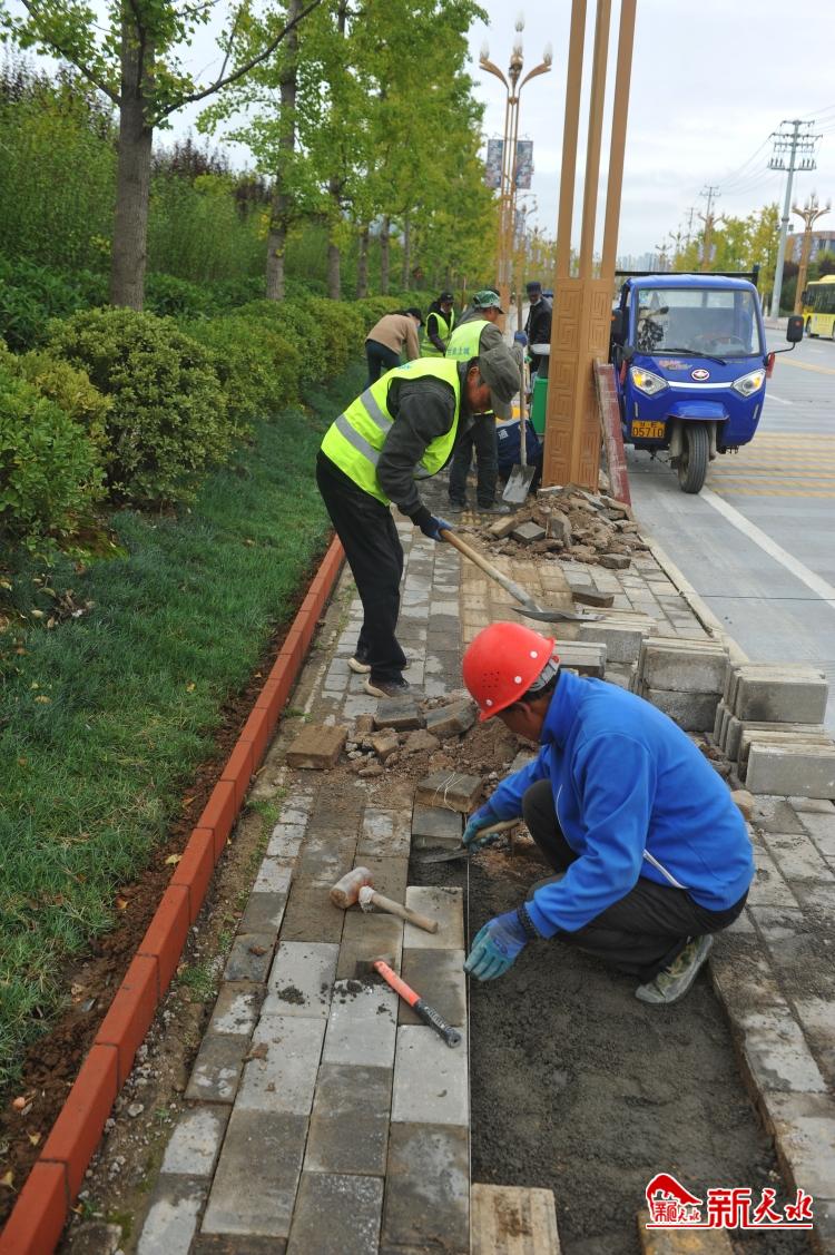 国庆节前夕,本报记者将该路段人行道路面塌陷、路面彩砖缺损的情况反馈给天水市城投公司后,市城投公司及时派出工程队进行修补整理,还为路边的绿化带边沿修建安装了一道彩砖。这道彩砖不仅能够较好地防止下雨天绿化带中积聚的雨水和泥土流到路面上,还起到了美化绿化带的作用。据现场施工人员说,整个修补工作将于本周末完工。