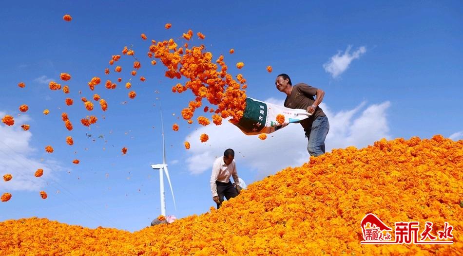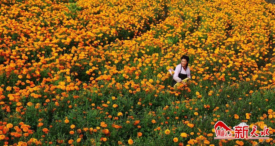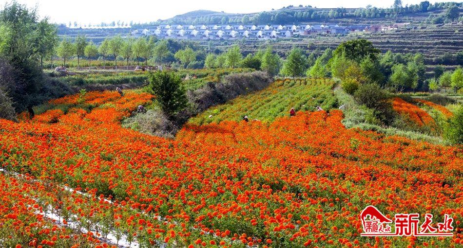 新天水讯【特约通讯员 王玉芳 马尧】金秋十月,清水县松树镇3000多亩万寿菊进入盛花期,开始第四茬采摘,金灿灿的花海成为扮靓群众增收致富的美景,也为发展乡村旅游和观赏农业带来了契机,成为农户增收的新途径。