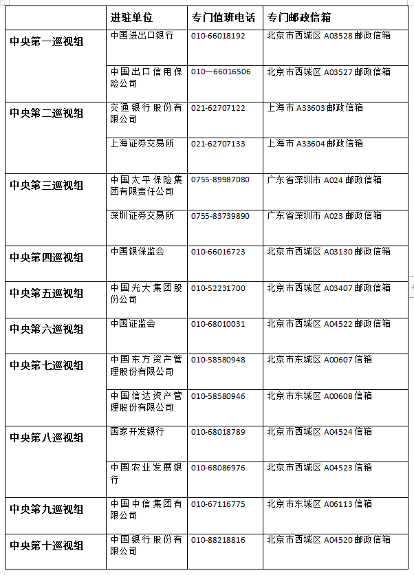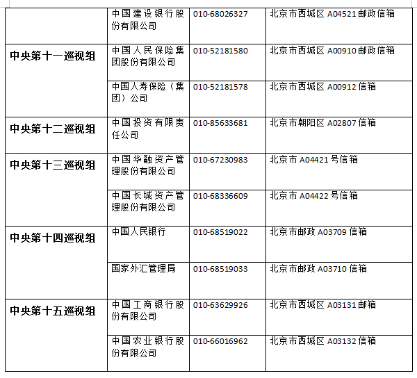 本轮巡视各组联系方式一览↓↓↓