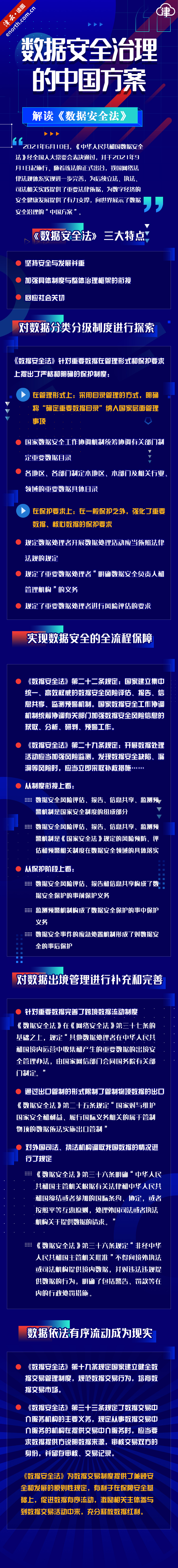 天津北方网讯:2021年6月10日,《中华人民共和国数据安全法》经全国人大常委会表决通过,并于2021年9月1日起施行。随着该法的正式出台,我国网络法律法规体系实现进一步完善,为后续立法、执法、司法相关实践提供了重要法律依据,为数字经济的安全健康发展提供了有力支撑,向世界展示了数据安全治理的“中国方案”。(津云新闻编辑 张璟 张瑜)